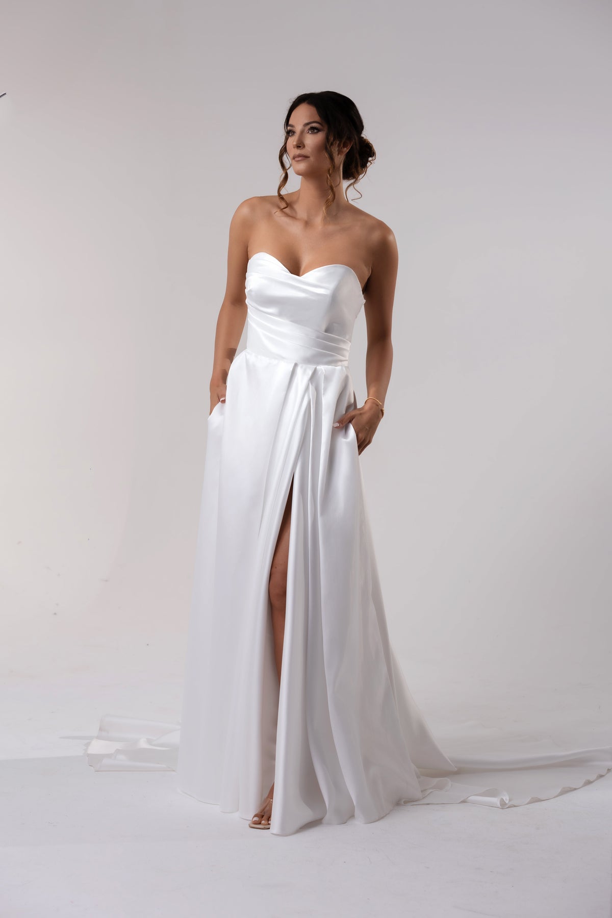 Experience beauty and grace in our Amaya dress. Crafted with luxurious satin, this A-line dress features a sweetheart neckline, laced straps, and a split skirt for a touch of sophistication. It's a fashion statement that exudes exclusivity and elegance for any special occasion. Elevate your style and feel like a work of art.
