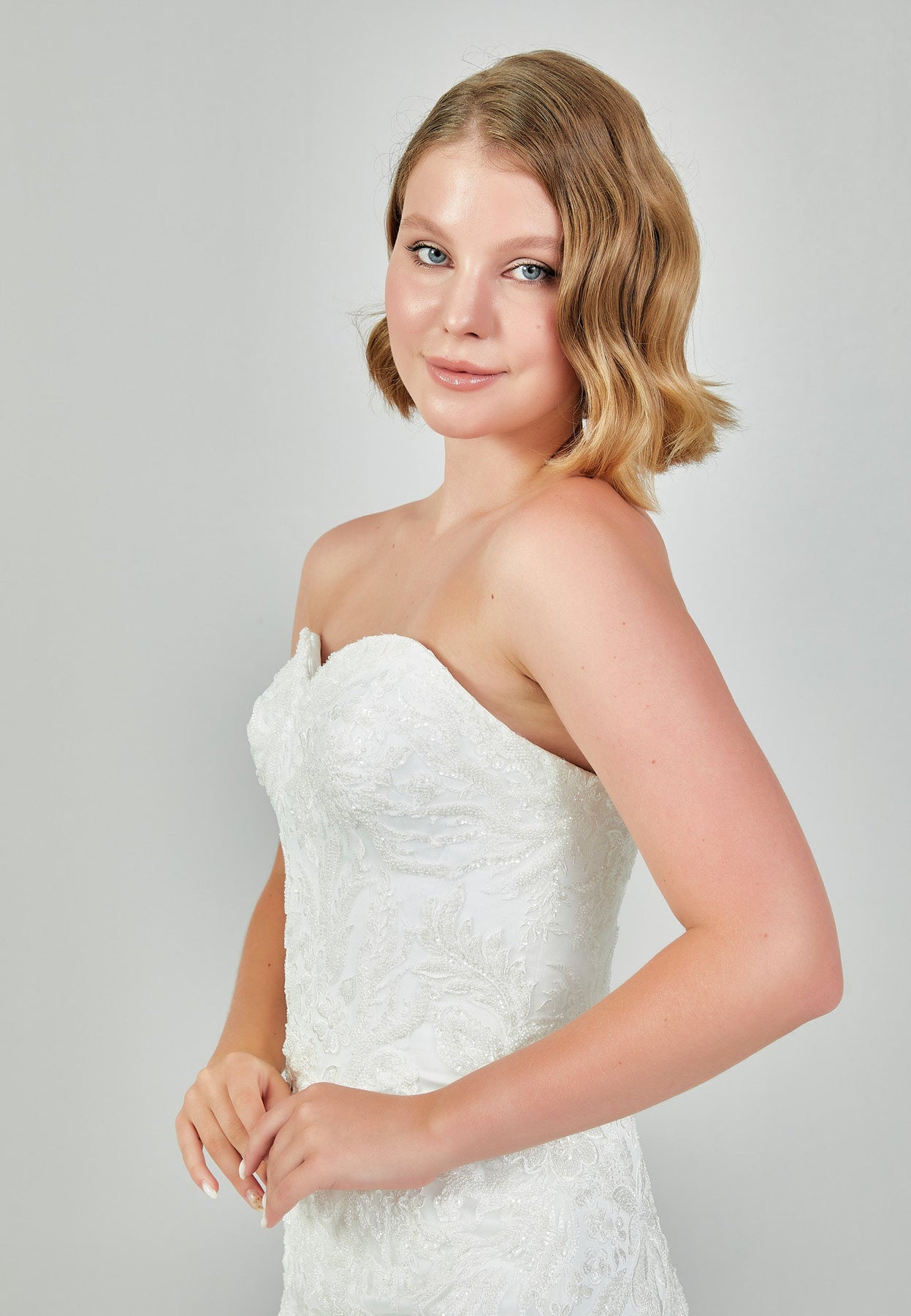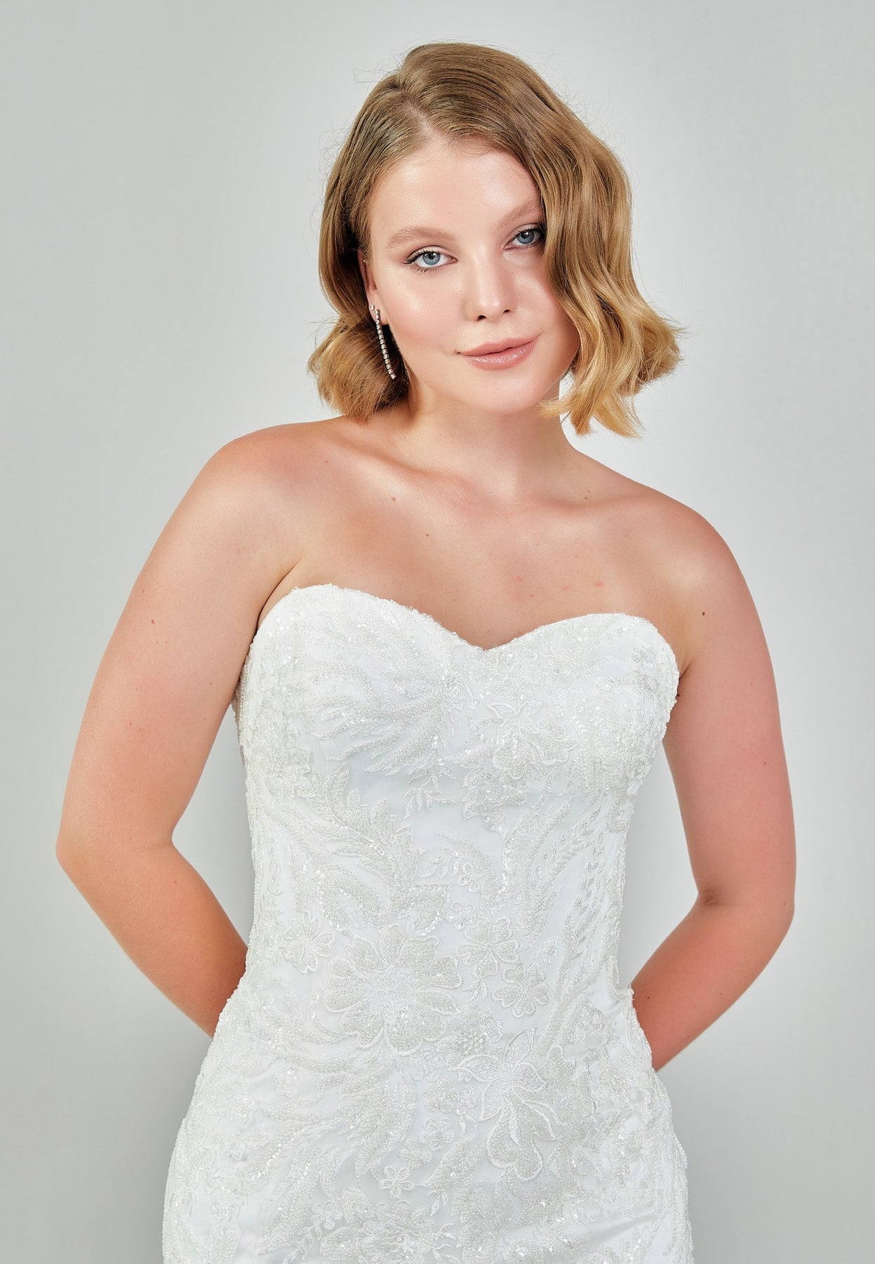The elegant and sexy sweetheart shape will flatter your figure while the tie back adds a touch of sweetness. Perfect for any occasion, make a statement with Edie.